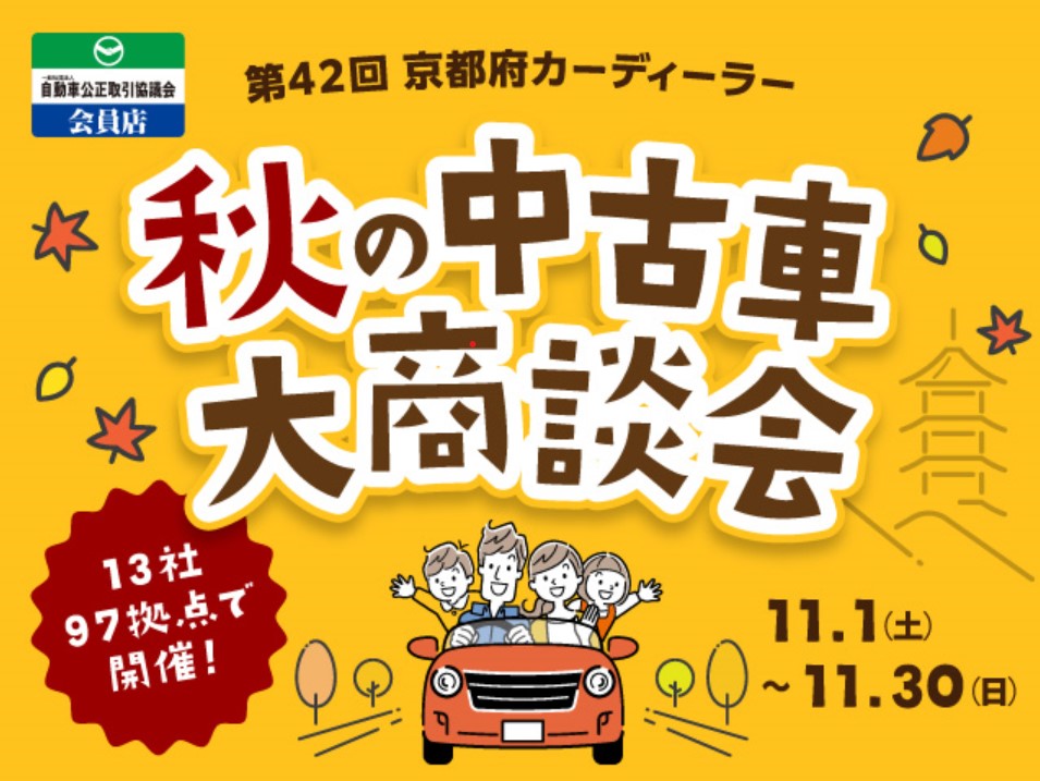 また、京都スバルでは11月1日(土)から9月30日(日)まで「第42回 京都府カーディーラー 秋の中古車大商談会」を開催しております。