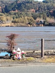 冬の広沢池とお地蔵さま