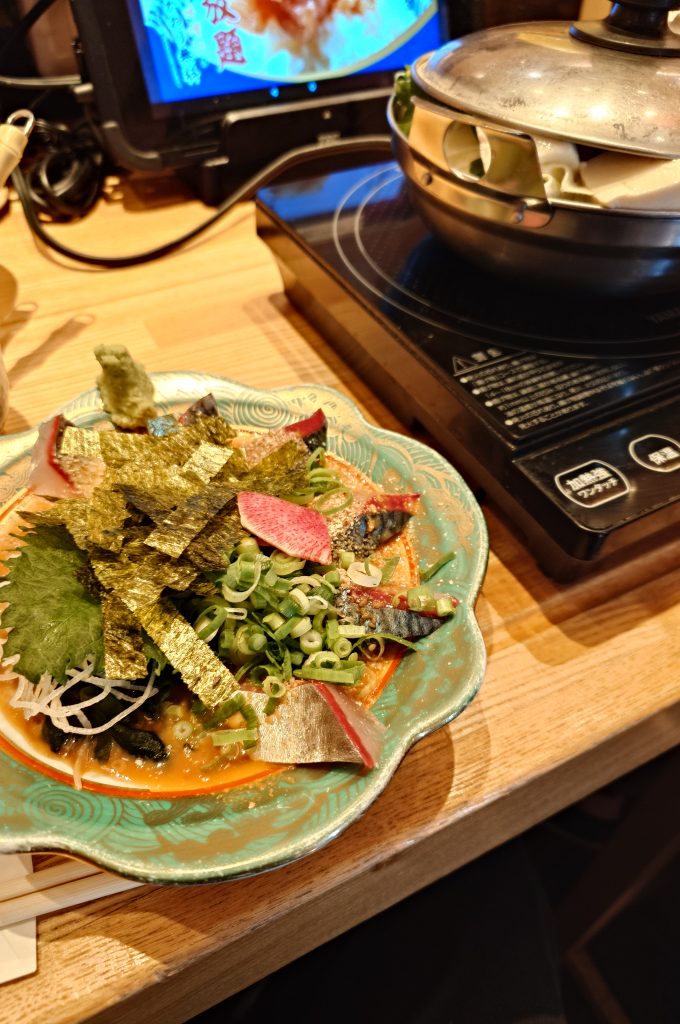 ちょっと酔いがあり写真がボケてますが、ゴマ鯖と水炊きをまず!