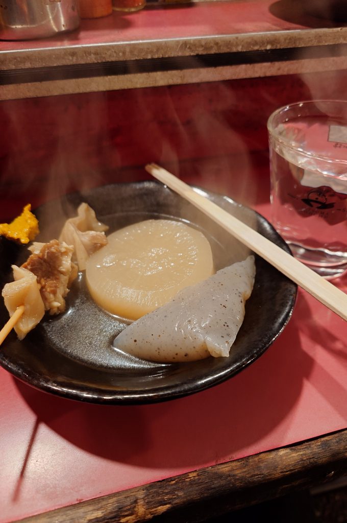 吸い込まれるように入り、おでんと焼酎のお湯割りを頂きました。