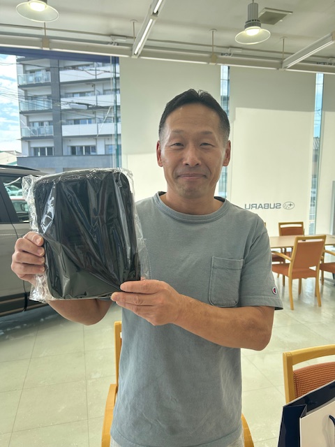 最後の仕事というわけではないのですが、ファンファンマイスバルの抽選に当選された先週新型フォレスターをご納車させていただいたお客様に商品をお渡しすることが出来ました!