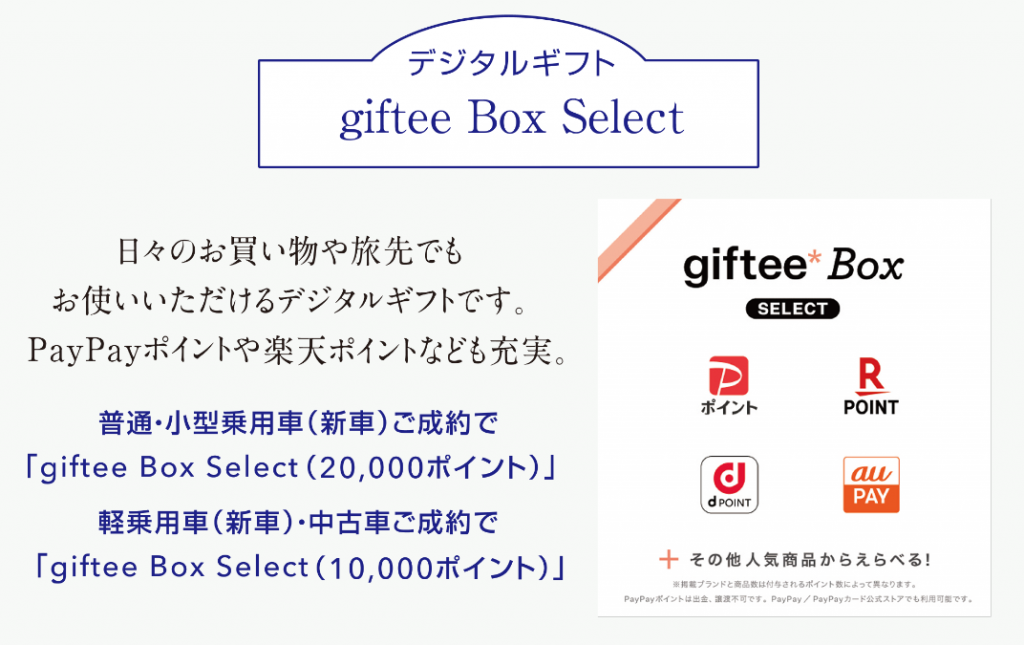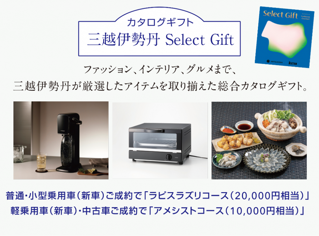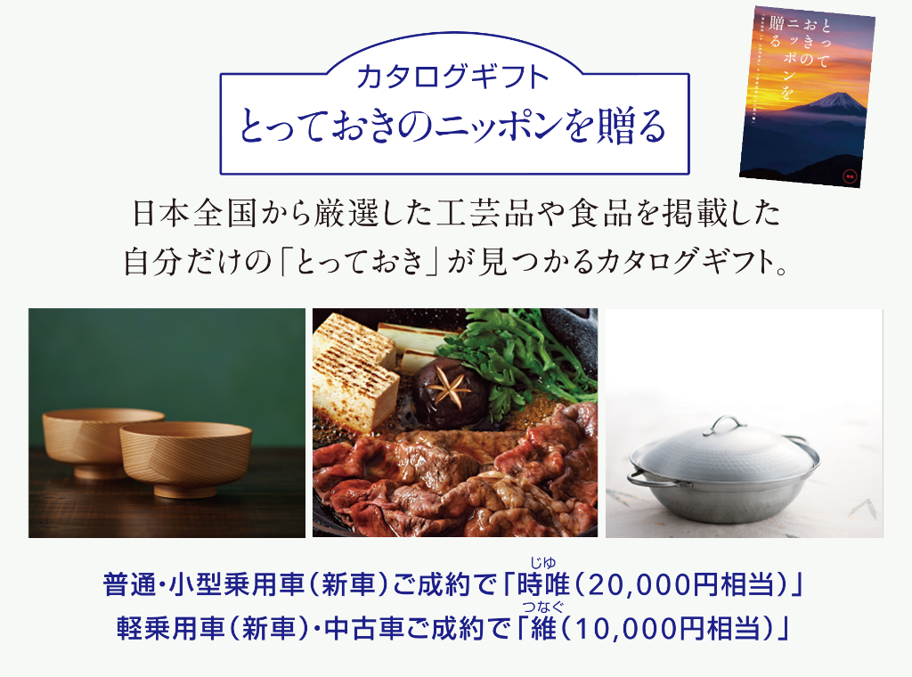 普通・小型自動車(新車)ご成約で2万円相当のカタログギフト2種と