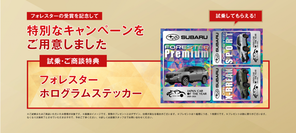 フォレスターが2025-2026 日本カー・オブ・ザ・イヤーを受賞し、それを記念しまして
