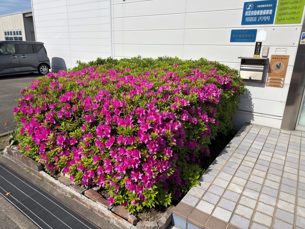 さて店舗の入り口前にあるツツジですが、綺麗に咲いてきました!![]()