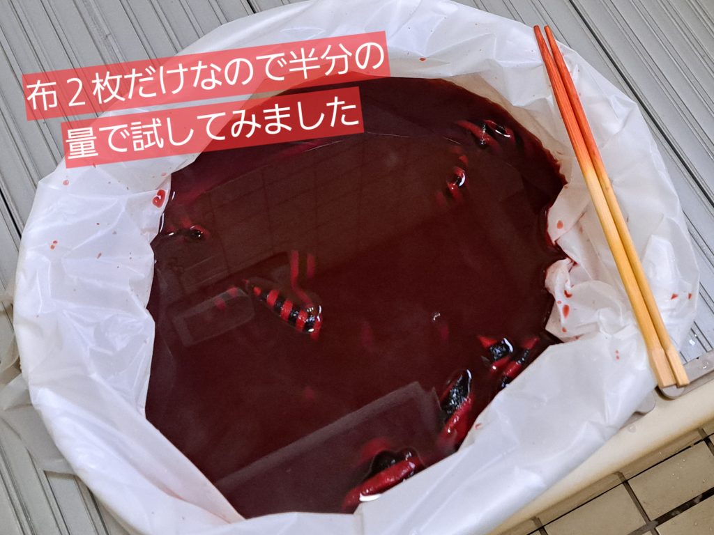 4L程のぬるま湯に色止剤をいれて、さらに40分ほど放置