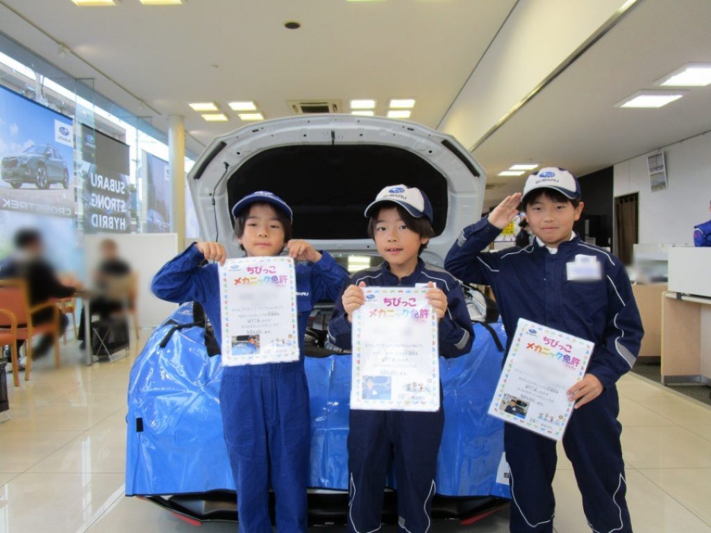 無事に点検が終了したら、店長より「ちびっ子メカニック免許」の