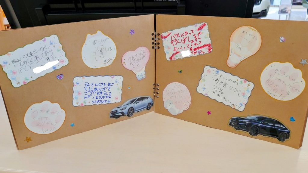 山科店敷地内に誘導し乗降してもらった時のお礼のプレゼントです。