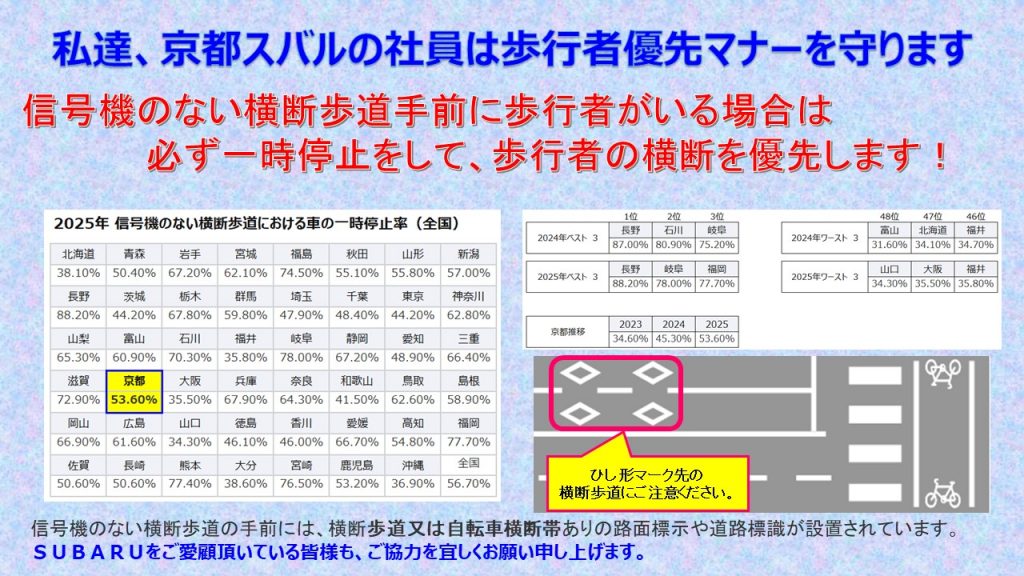 だんだんと、京都の一時停止率が上がってきて成果が表れてきています!