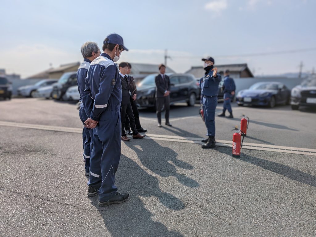 この日は、屋外で消防士さんによる“消火器”を実際に使用する訓練があり