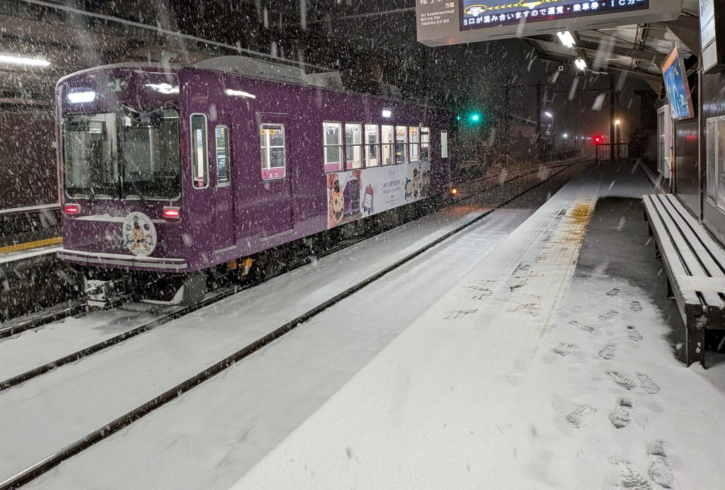 『嵐電』は地元市民の足です!特に雪降った日は、強い味方です!