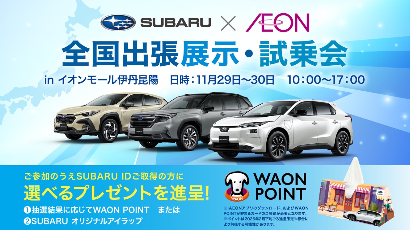 アイサイト体感試乗や最新の車両を間近でご覧いただけるイベントを開催します。